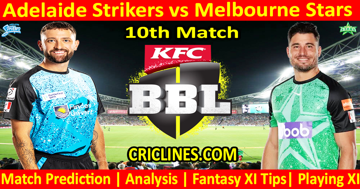 Dream11 Prediction for Adelaide Strikers Melbourne Stars, 10th Match. After checking the latest player’s availability, the Dream 11 Team for this match of Adelaide Strikers vs Melbourne Stars, is mentioned under.