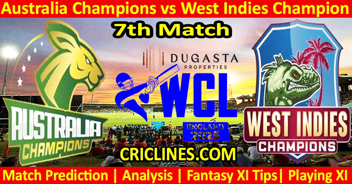The world is ready to witness yet an other big battle of WCL T20 cricket. The 7th match of World Championship of Legends T20 2025 is scheduled to be held on Wednesday, 23rd July 2025 between Australia Champions and West Indies Champion at County Ground, Northampton. We are posting safe, secure and accurate today match prediction of World Championship of Legends T20 2025.