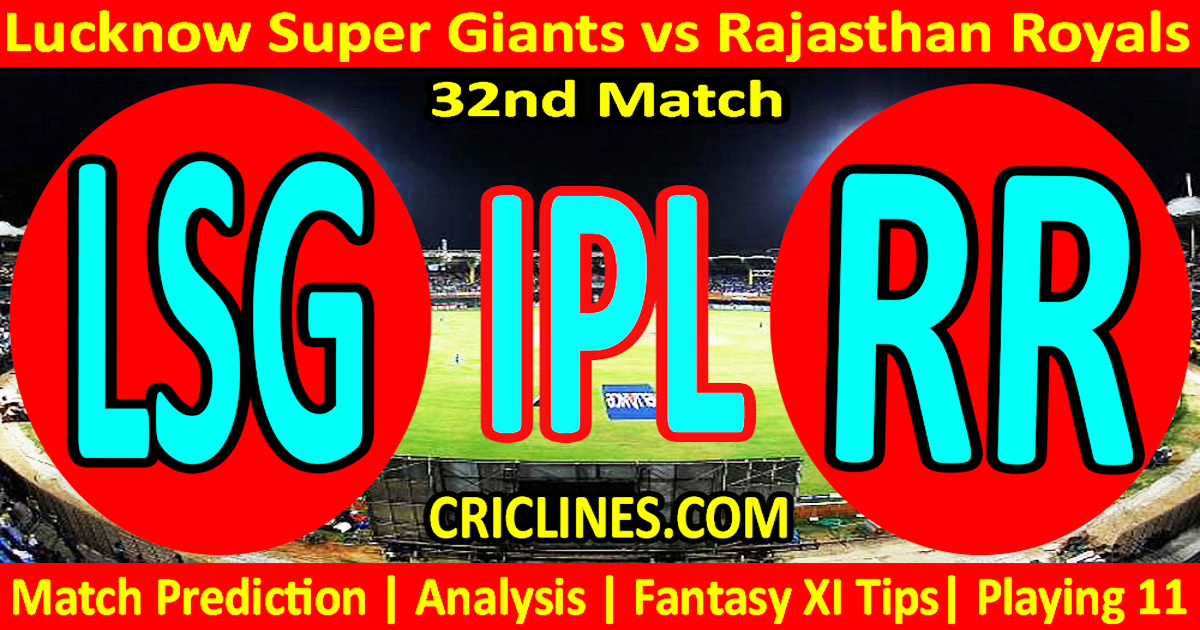 The world is ready to witness yet another big battle of the IPL 2026. The 32nd Match of the Indian Premier League 2026 is scheduled to be played between Lucknow Super Giants and Rajasthan Royals on Wednesday 22nd April 2026 at Bharat Ratna Shri Atal Bihari Vajpayee Ekana Cricket Stadium, Lucknow. We are posting safe, accurate, and 100% secure today match prediction of IPL T20 2026 with live IPL socres and ball-by-ball updates with predictions.