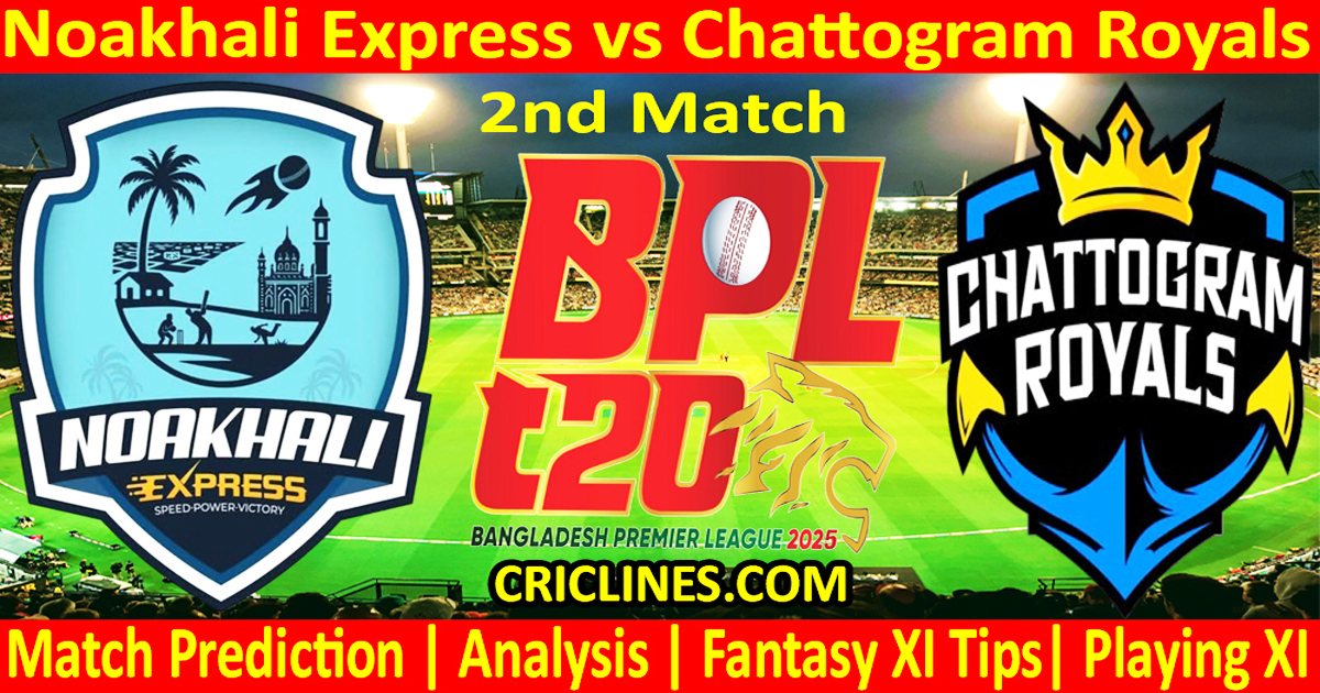 Noakhali Express vs Chattogram Royals 2nd Match BPL T20 today match prediction. Bangladesh Premier League 2025-26. Who will win today match NES vs CRS? We provide 100 % sure today cricket match prediction tips and dream11 fantasy team by Raja Babu. BPL toss prediction. Live score with ball-by-ball update. Cricket toss prediction.