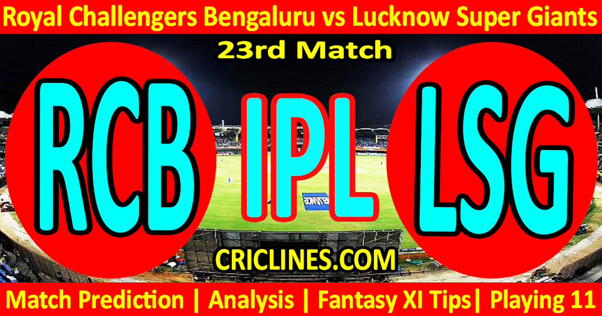The cricket fans are ready to witness yet another big battle of the IPL 2026. The 23rd Match of the Indian Premier League 2026 is scheduled to be played between Royal Challengers Bengaluru and Lucknow Super Giants on Wednesday 15th April 2026 at M.Chinnaswamy Stadium, Bengaluru. We are posting safe, accurate, and 100% secure today match prediction of IPL T20 2026 with live IPL socres and ball-by-ball updates with predictions.