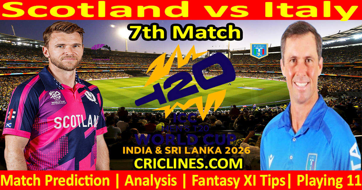 Scotland vs Italy 7th Match World Cup 2026 Dream11 today match prediction. World Cup T20. Who will win today match SCO vs ITA? We provide 100 % sure today cricket match prediction tips by Raja Babu with Dream11 Fantasy Team Prediction. World Cup toss prediction. Live score with the ball-by-ball update. Cricket toss prediction.