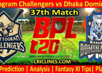 Chattogram Challengers vs Dhaka Dominators 37th Match BPL T20 today match prediction. Bangladesh Premier League 2023. We provide 100 % ...