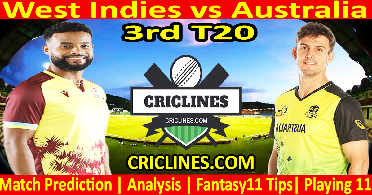 West Indies vs Australia 3rd T20 today match prediction. We provide 100 % sure today cricket match prediction tips and dream11 fantasy team by Raja Babu. Who will win today match WI vs AUS? Live score with the ball-by-ball update. Cricket toss prediction.