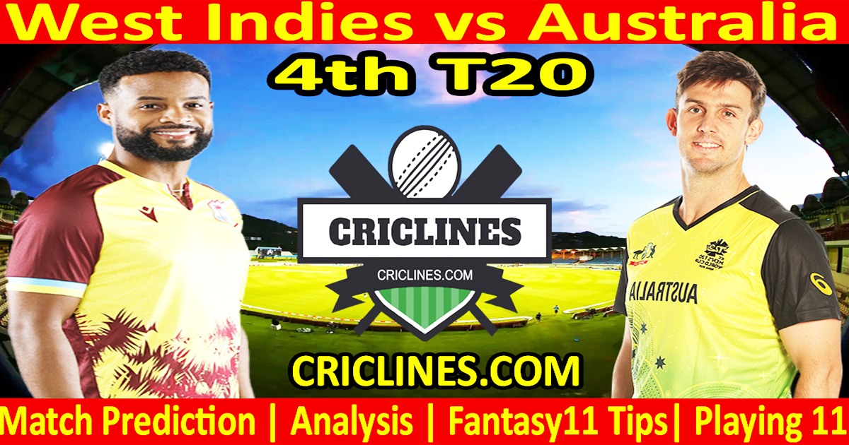 West Indies vs Australia 4th T20 today match prediction. We provide 100 % sure today cricket match prediction tips and dream11 fantasy team by Raja Babu. Who will win today match WI vs AUS? Live score with the ball-by-ball update. Cricket toss prediction.