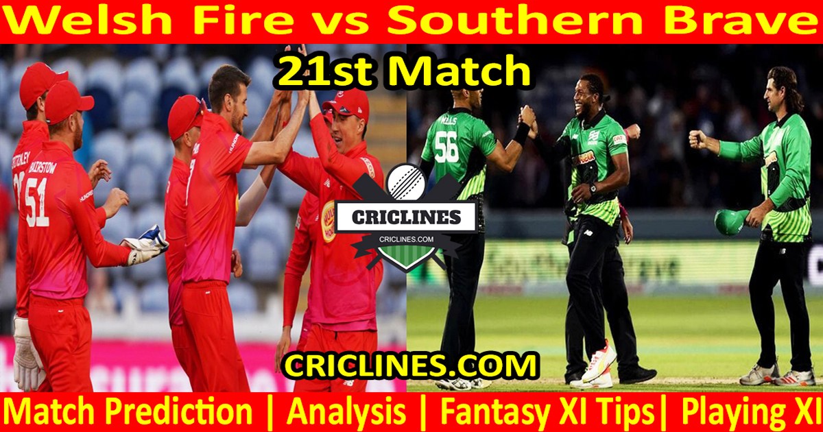 Welsh Fire vs Southern Brave 21st Match The Hundred League-2025 today match prediction. Who will win today match WLF vs STB? The 100 League. We provide 100 % sure today cricket match prediction tips by Raja Babu. The 100 toss prediction. Live score with the ball-by-ball update. Cricket toss prediction.