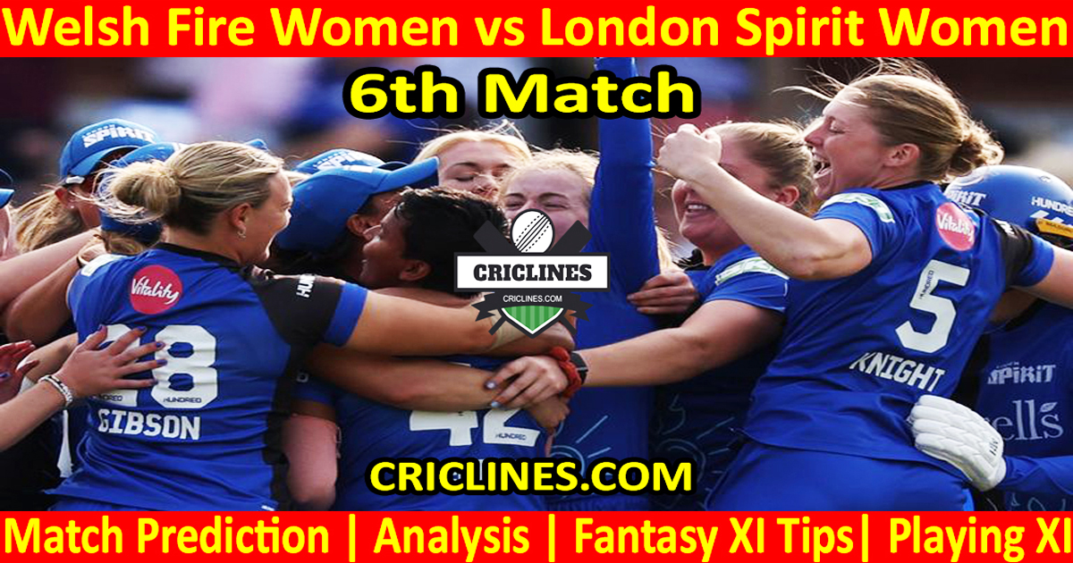 Welsh Fire Women vs London Spirit Women 6th Match The Hundred Womens Competition 2025 today match prediction. Who will win today match WLFW vs LNSW? The Hundred Womens Competition 2025. We provide 100 % sure today cricket match prediction tips by Raja Babu. The Hundred Womens Competition 2025 toss prediction. Live score with the ball-by-ball update. Cricket toss prediction.
