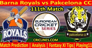 Barna Royals vs Pakcelona CC 111th Match ECS T10 2020 today match prediction. European Cricket Series ECS T10 Barcelona Series. We provide 100 % sure today cricket match prediction tips by raja babu. Who will win today match BRS vs PCC. ECS toss prediction. Live score with ball by ball update. Cricket toss prediction free.