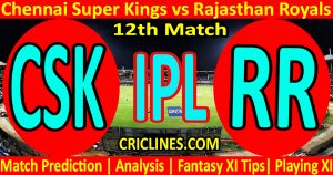 Who Will Chennai Super Kings vs Rajasthan Royals 12th Match IPL T20 2021 Match-CSK