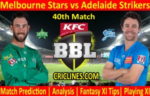 The cricket fans are ready to witness yet another big battle of BBL T20. The 40th Match of Big Bash League 2020-21 is scheduled to play between Melbourne Stars and Adelaide Strikers on Friday, 15th January 2021 at Manuka Oval, Canberra. We are posting safe, accurate, and secure today match prediction for all matches of BBL free.